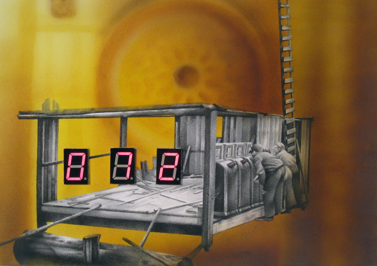 4/2015, Graphite on paper, 7 segment LED, micro-controller with thermometer, H:26 x W:36.5 x D:3