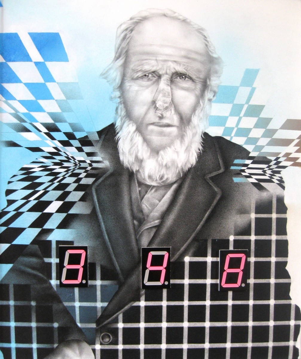 1/2015, H:64x W:54, H: 25 x W: 21(inch), Graphite, acrylic, LED matrix on paper The notion of time is a convenient measurement of our existence. The elderly man as a shepherd, who leads groups and communities of people and cattles – is symbolized here as ‘history’ and ‘convention’. The three LED segments that count numbersContinue reading “Portrait of Shepherd”